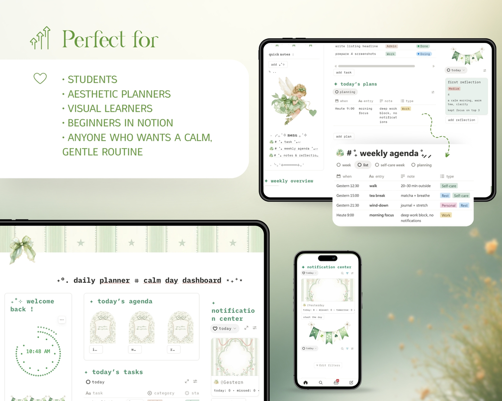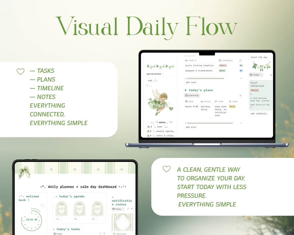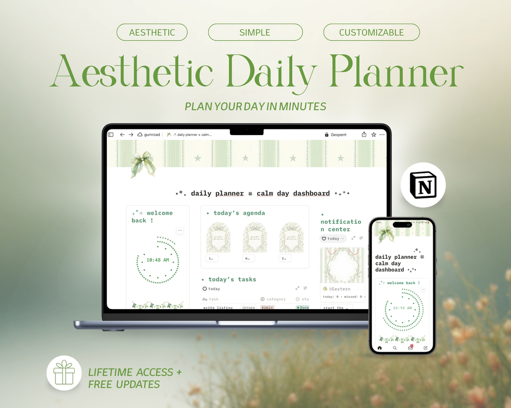 daily planner notion ยท simple notion template ยท one page planner ยท aesthetic daily dashboard ยท notion for students ยท beginner notion template ยท minimalist daily planner ยท student daily routine ยท visual planner notion ยท calm productivity template ยท notion daily layout ยท green aesthetic notion ยท simple study planner ยท daily organization system ยท stress-free planner notion