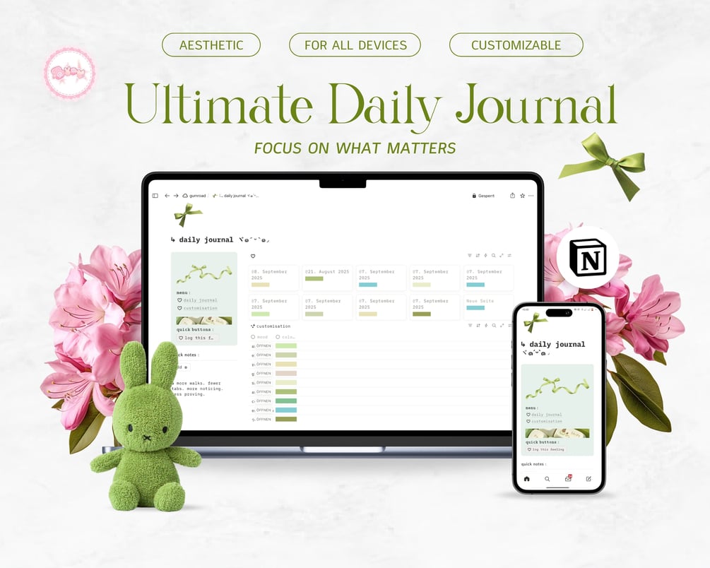 notion journal template ยท daily journal notion ยท mood tracker notion ยท guided journaling prompts ยท aesthetic notion template ยท mindful reflection template ยท student journal notion ยท mental health tracker ยท emotional wellness planner ยท self-care notion template ยท journaling for anxiety ยท notion diary template ยท green aesthetic notion ยท minimalist journal system ยท journaling for overwhelm