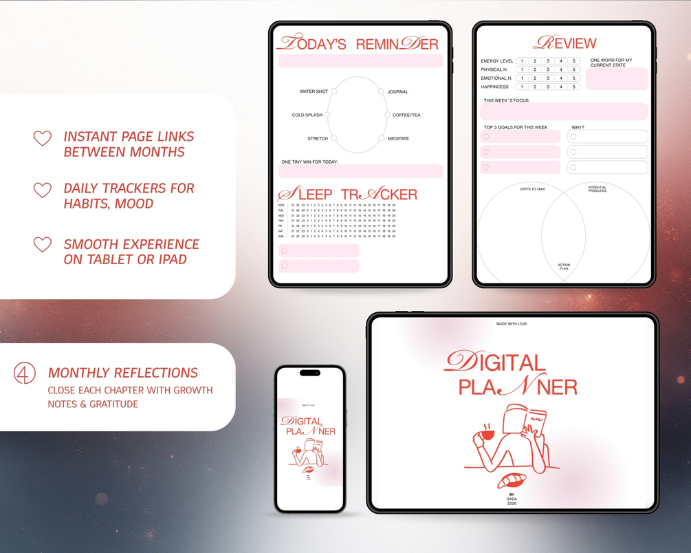 Rose & Scarlet Digital Planner – aesthetic digital planner for calm productivity & mindful organization.