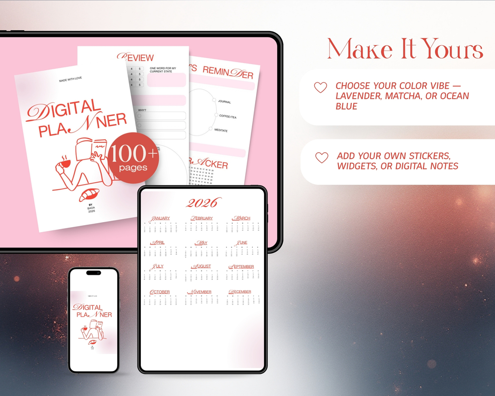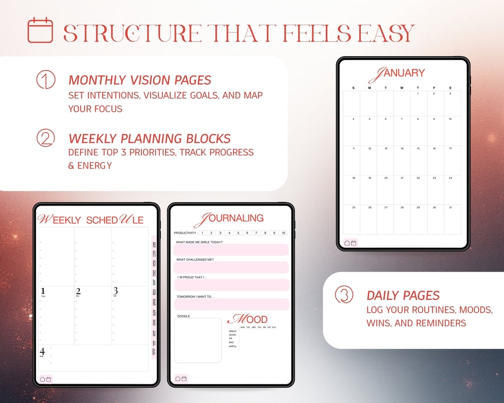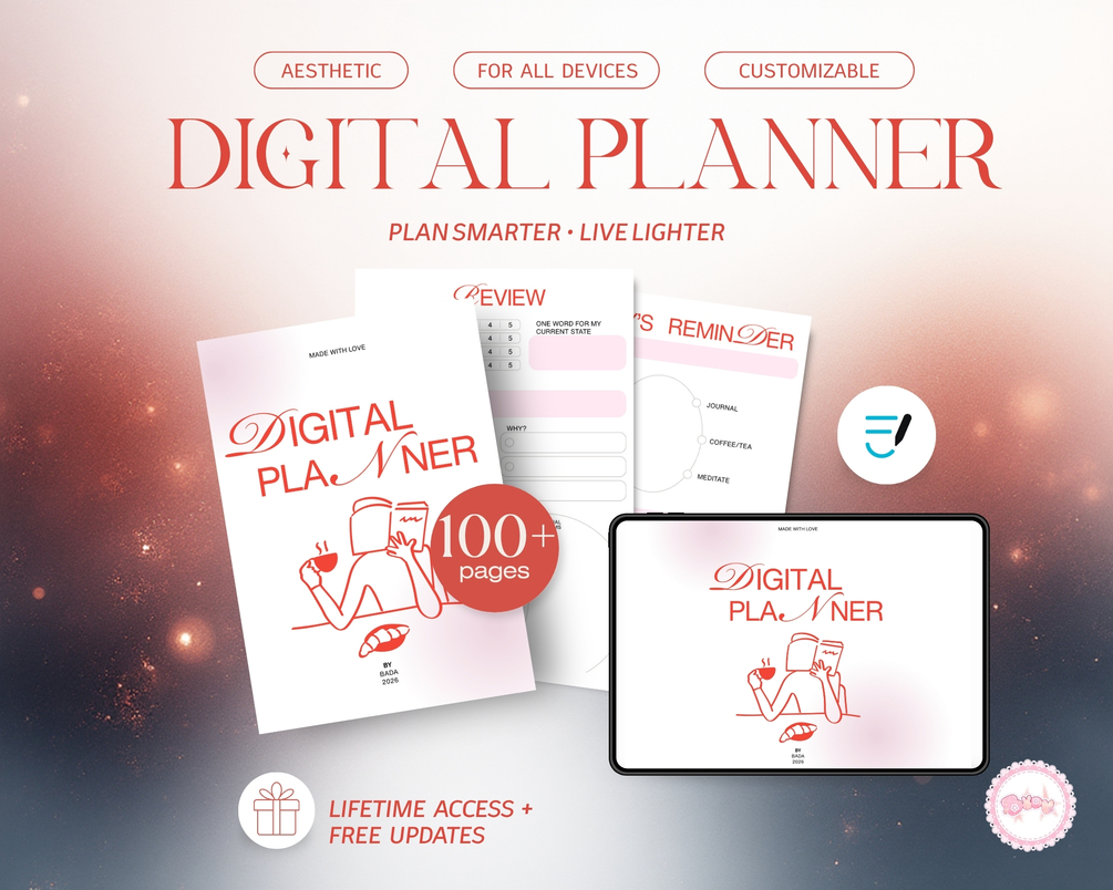 2026 Digital Planner for iPad Life Organizer combining daily focus, weekly goals, mood tracking and productivity journaling